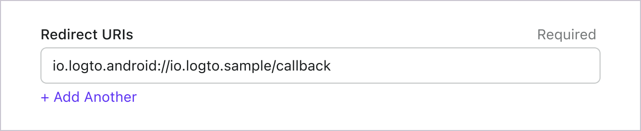 Assumindo que você trate io.logto.android como o esquema personalizado LOGTO_REDIRECT_SCHEME, e io.logto.sample seja o nome do pacote do seu aplicativo, o URI de redirecionamento deve ser io.logto.android://io.logto.sample/callback.